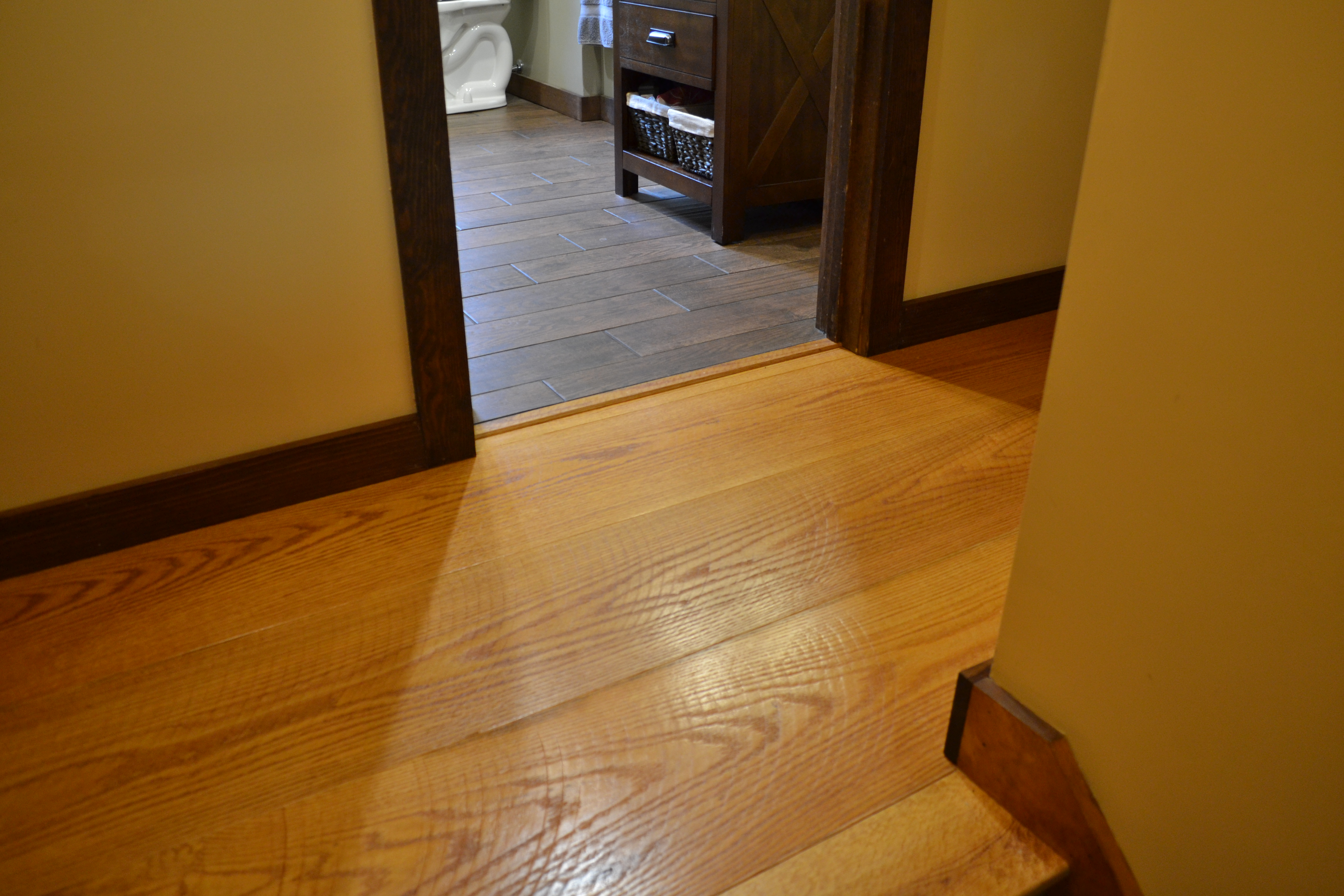 Pre-Finished Classic Plank White Oak with a Saw Kerf Texture. This flooring was a custom 12″width and while wide for the narrow hallways add’s to the historic character of the home which the home owners are concerned with maintaining.