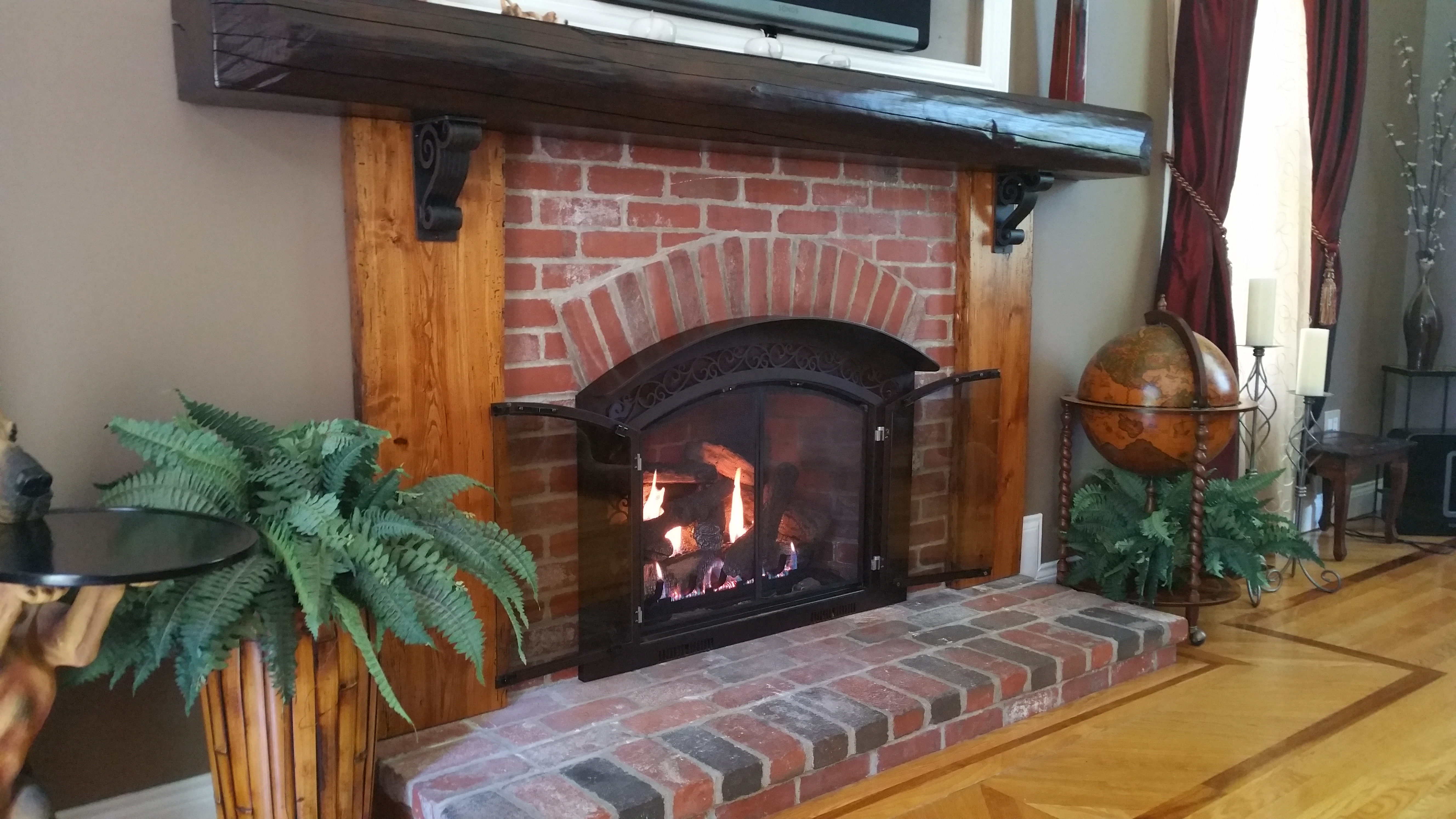 Very often we receive truckloads of reclaimed timber. Most is sorted into stock to be repurposed into flooring, paneling and millwork items. However, there are some timbers that are too beautiful to manufacture. These chosen beams are cleaned up, trimmed and on occasion, finished and then put out for sale in our showroom and lumber barn. Below are some images that our customers have shared with us of their installed mantel pieces, as well as some photo’s from our Showroom and Reclaimed Salvage Annex. We also make custom classic hardwood and softwood mantels that can be fabricated to fit any custom fireplace.