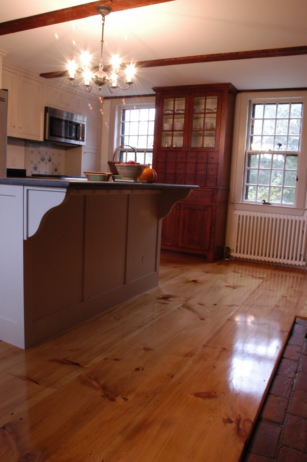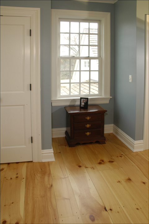 Bingham’s wide plank Eastern White Pine is harvested from mature Northeastern U.S. white pine timber, milled and produced in New England. Many antique New England homes feature wide plank white pine floors that show years of wear and a natural aged glow. Traditionally these floors were painted, coated with a heavy polyurethane or left unfinished and allowed to age naturally.