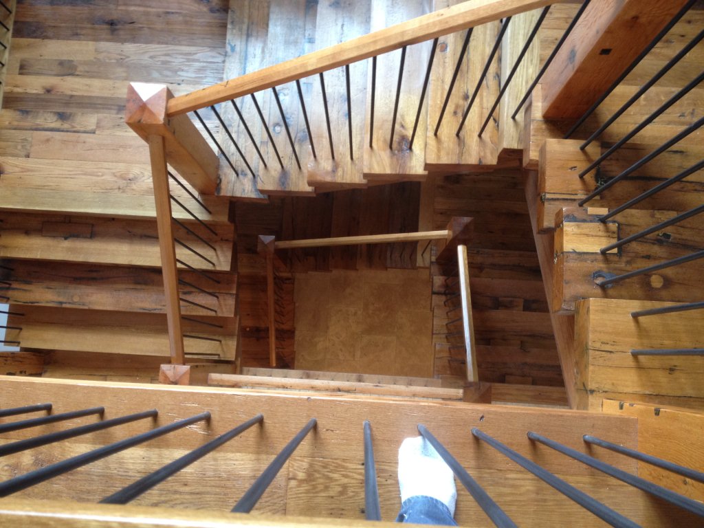 Our Millwork Shop can not only build beautiful reclaimed furniture but having this facility on site also allows for us to offer custom, handmade stair treads to go with your custom flooring order. We can do a full stair case or simply one step to help you transition to the next room.