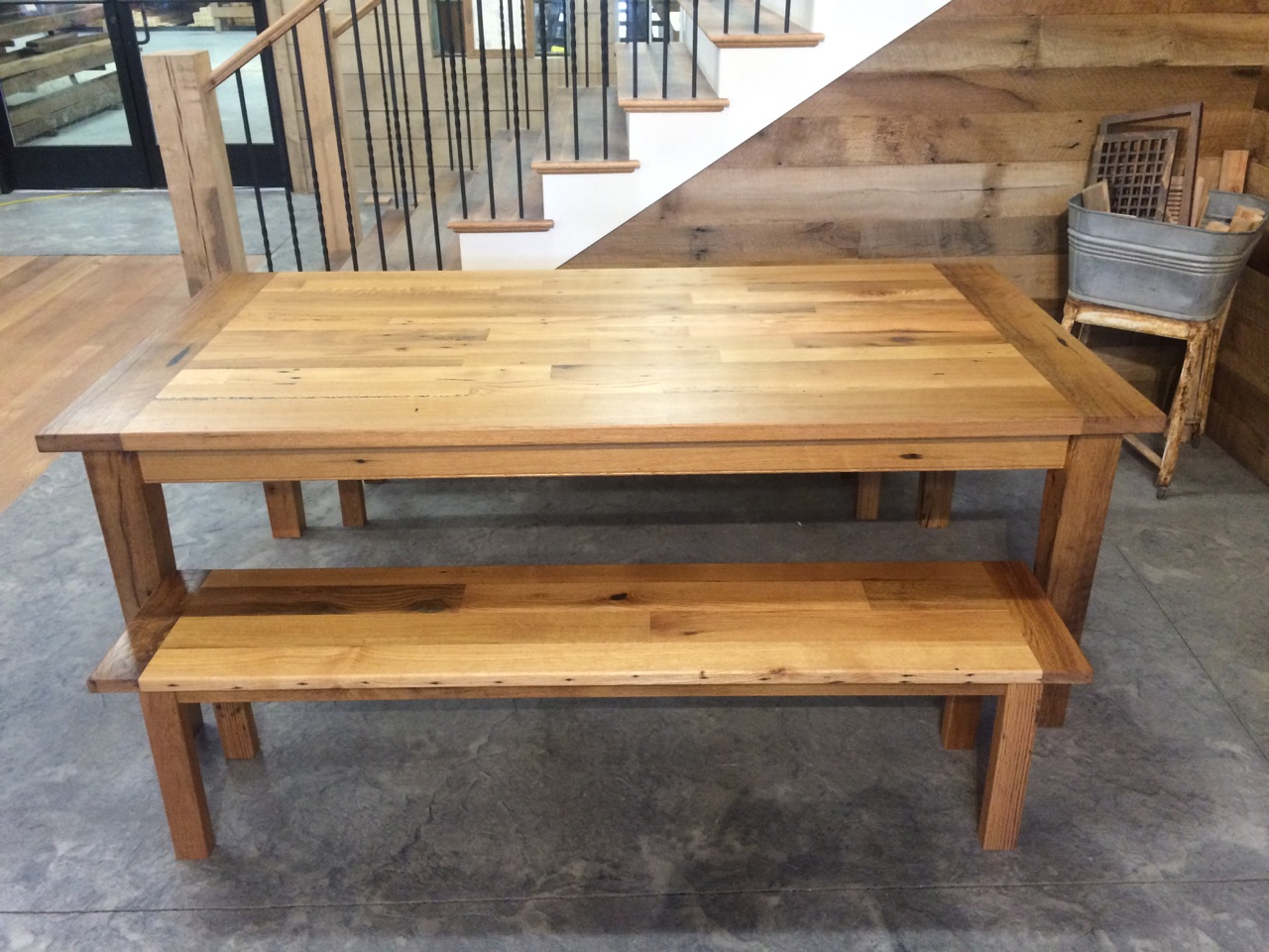 Reclaimed Oak Farmers Table with matching Benches and Tung Oil Finish