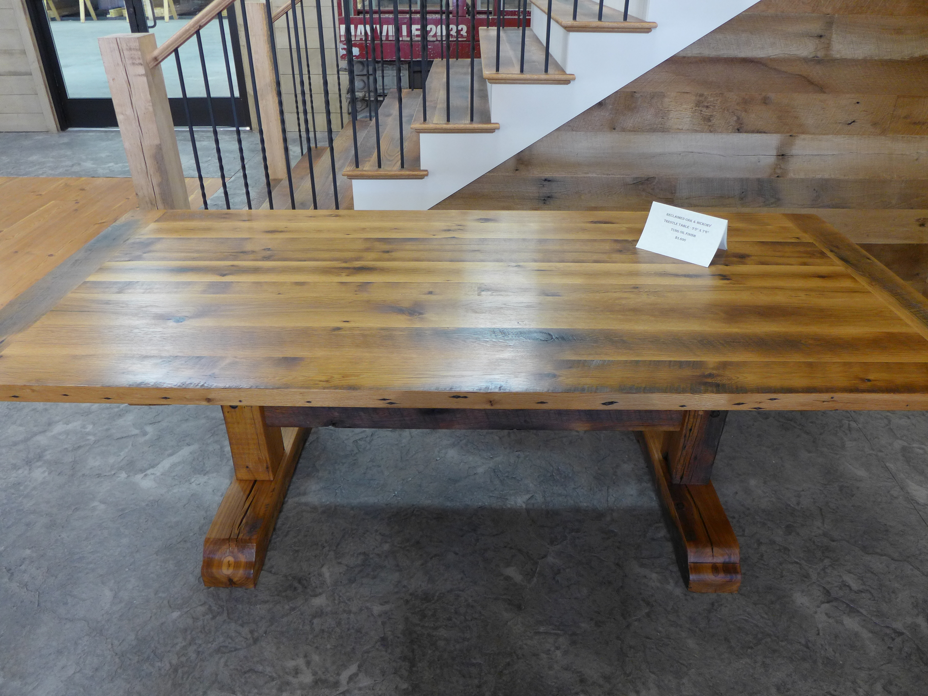 Reclaimed Oak Trestle Table with Tung Oil Finish