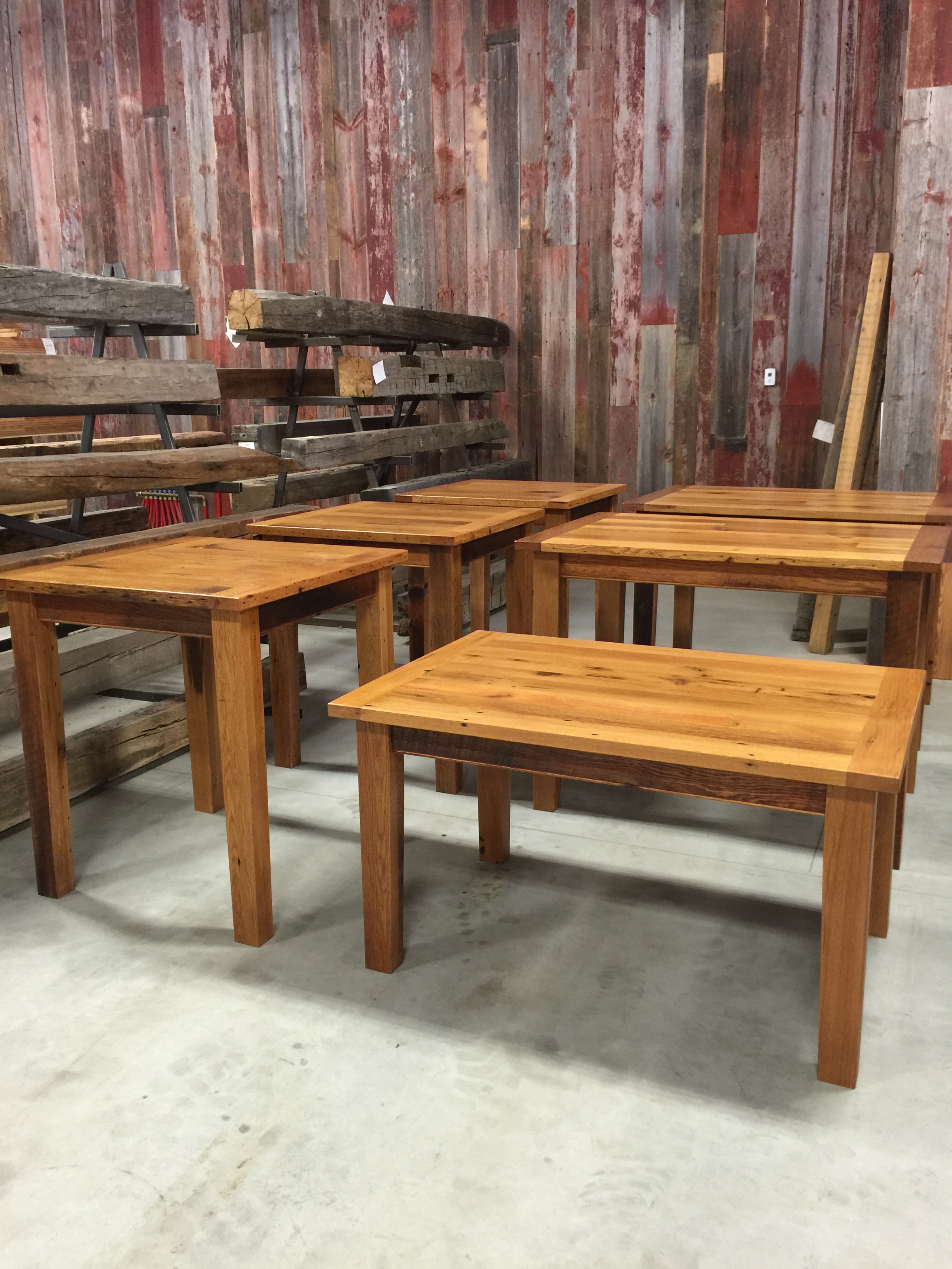 Reclaimed Vertical Grain Heart Pine Plank table tops